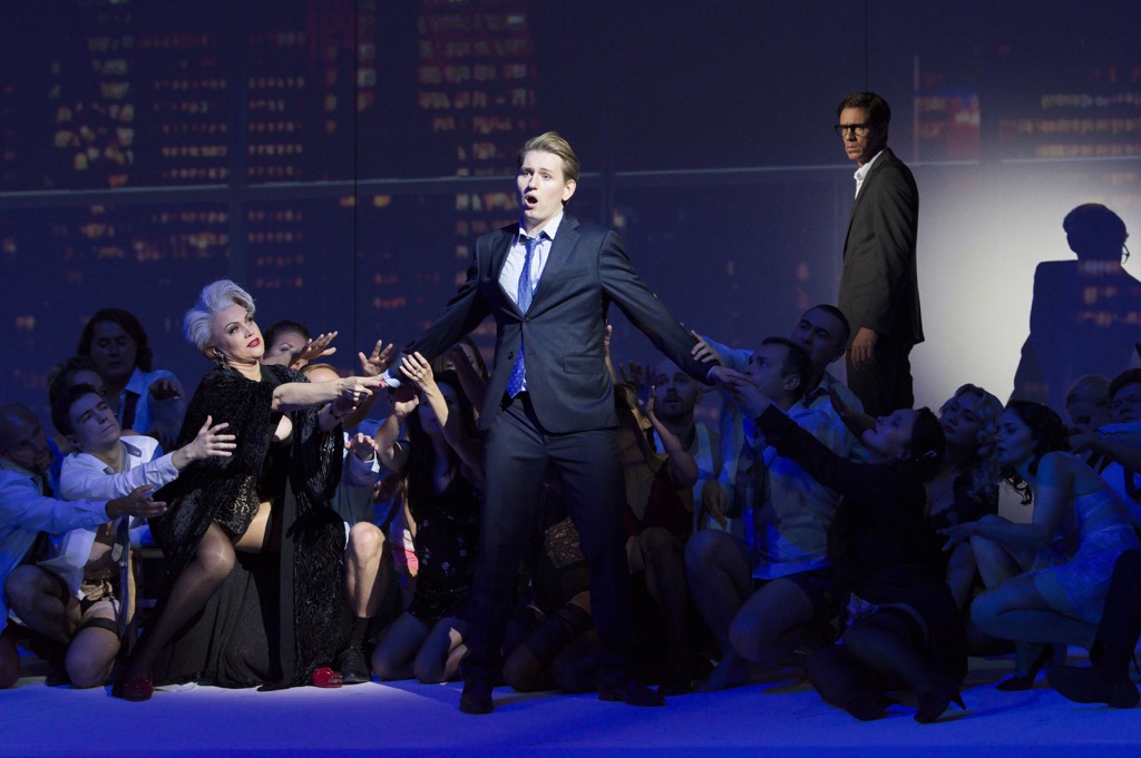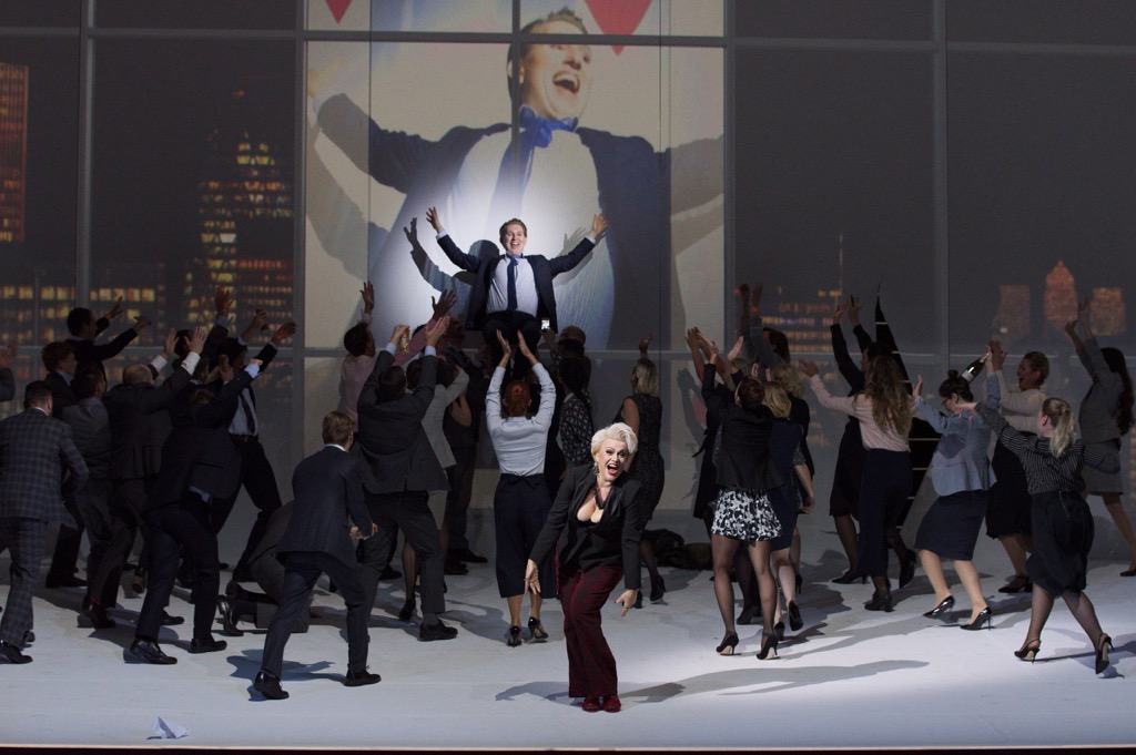Благодаря видеопроекционной мобильности, в первом акте мы легко переносимся в Лондон, и картина в борделе Матушки Гусыни на контрасте с деревенской идиллией впечатляет холодно-пустой жесткостью пластики и хореографических решений, а также звучанием ярко жанровых хоровых страниц.