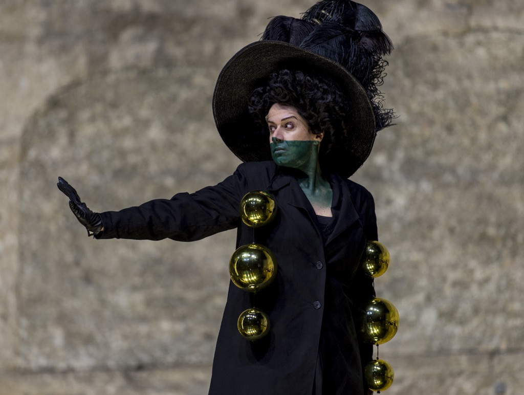 Кастеллуччи-художник душит визуальными метафорами: голые тела в полиэтиленовых мешках, черный жеребец, выходящий из пещеры пророка, замазанные красной краской лица Ирода и его свиты, заткнутые рты 96 арок Фельзенрайтшуле. Кастеллуччи-режиссер молчит. Молчит сознательно, делая умолчание центром постановки. Черная луна в финале вырастает до размеров огромного шара, который, лопаясь, сдувает всю сцену, и Саломею, и этот перевернутый мир.