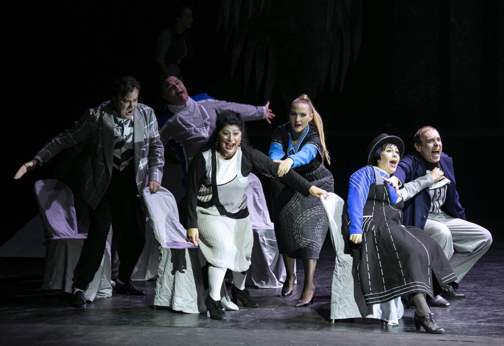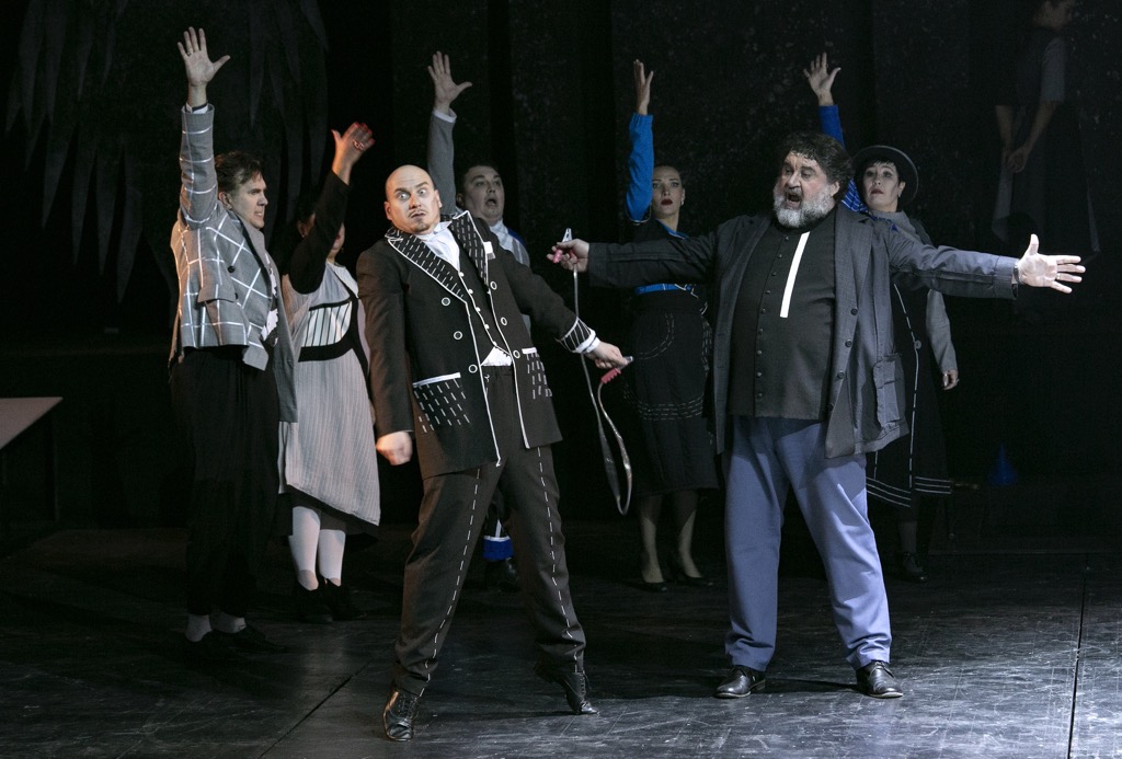В начале спектакля дирижер Евгений Хохлов шутливо-гордо прошел по сцене и спустился в яму, как хозяин подземного царства. Оркестр под его управлением звучал не всегда точно, но в целом осмысленно и энергично. Удачно выступила Наталья Фризе в партии двоюродной сестры Буозо Дзиты. Убедительно, с насыщенным тембром, звучал Алексей Перов в роли Симоне. Ирина Янцева, хоть и с усилием, справилась с партией дочери Скикки Лауретты, в том числе с хитовой «O mio babbino caro». Безусловным вокальным и актерским украшением спектакля стал главный герой – практичный неунывающий Джанни Скикки в исполнении Василия Святкина.