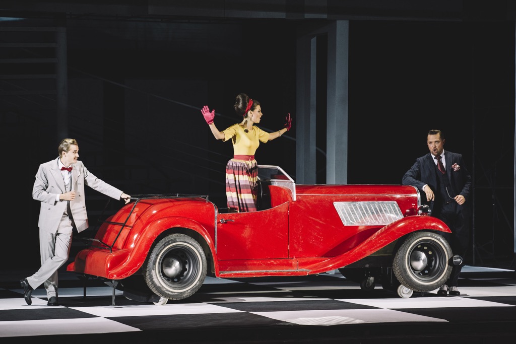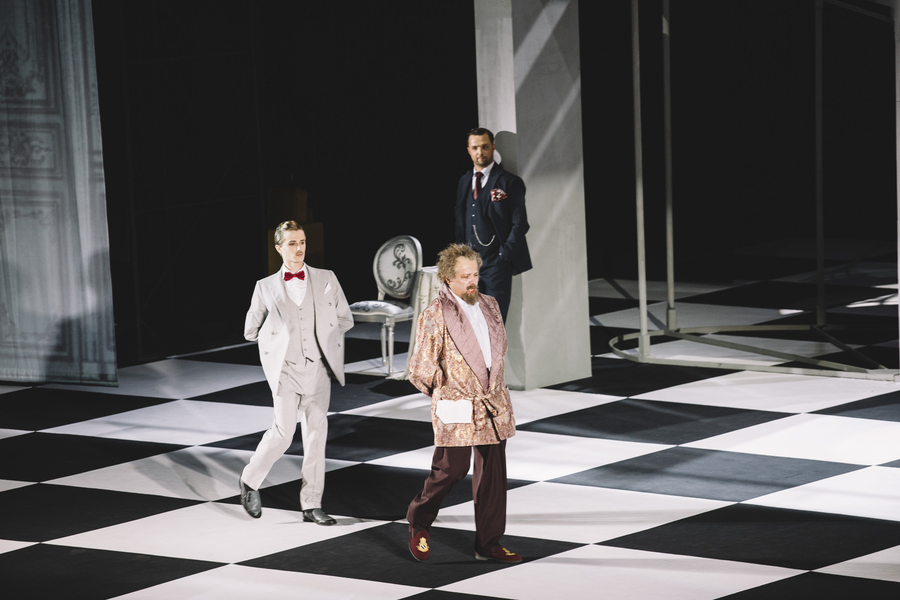 Трое других вокалистов (Тигрий Бажакин (Доктор Малатеста), Анна Викулина (Норина), Савелий Андреев (Эрнесто)) – артисты «Мюзик-холла», и если верить сайту театра, этим летом они проходили профессиональную стажировку в оперных театрах Италии. Пока исполнение этих партий вызывает у молодых артистов большую степень напряжения, и если у баритона напряженный, с усилиями звук был только поначалу, а потом он «распелся», то двум другим партии даны что называется «на перспективу», над ними еще нужно хорошо поработать. Тенор Андреев очень понравился с точки зрения тембра – звонкого, летящего, но от перенапряжения случались и сбои. Сопрано пела без явных сбоев, но ее плосковатое, совсем не белькантовое звукоизвлечение к материалу вовсе не подходило. Зато все трое выглядели очень эффектно и кинемотографично: расслабленный и разнеженный тенор в светлом костюме, вертлявый и энергичный баритон в двухцветных ботинках времен «сухого закона» в Чикаго и тоненькая, собранная, как пружинка, разнаряженная сопрано-«кинозвезда».