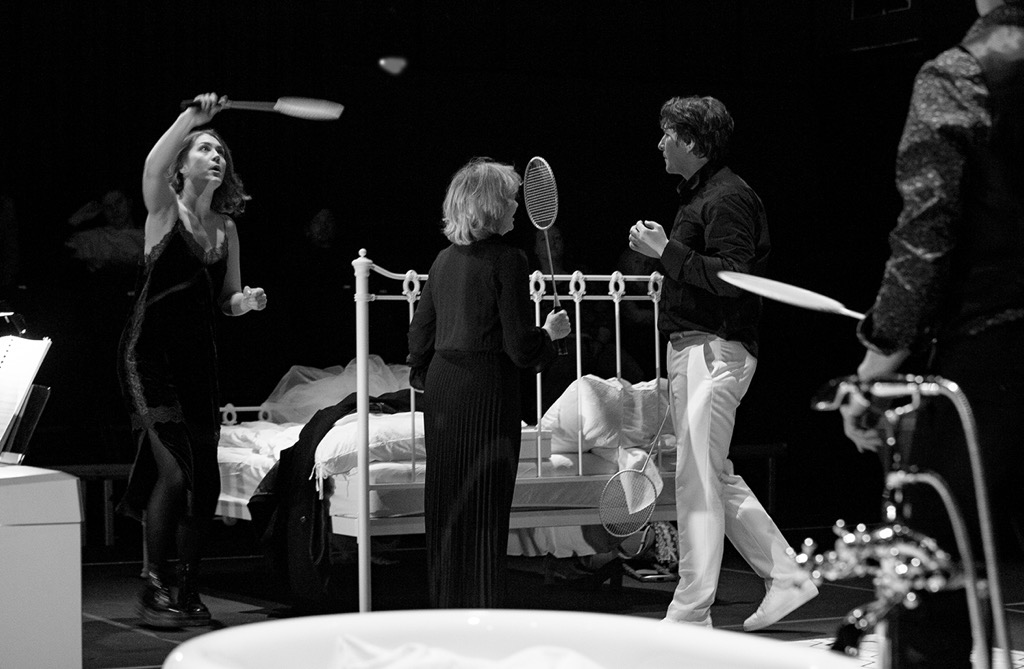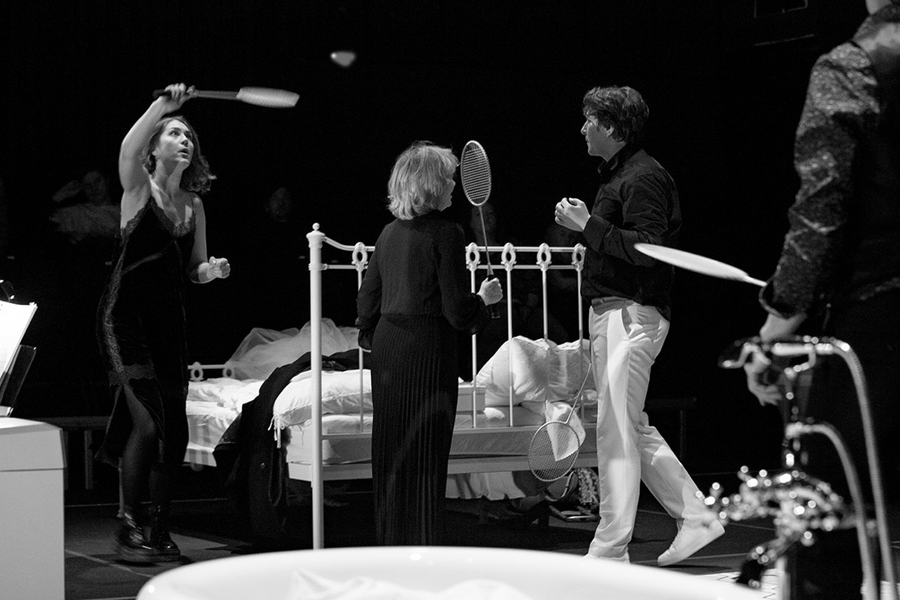 Впечатления автора от названной премьеры основаны на втором спектакле 13 марта, и прежде чем начать ими делиться, обозначим систему постановочного отсчета. Понятно, что ее базисом служит сюжет, и основан он на мотивах одноименного французского романа Жана Кокто «Les Enfants terribles» (1929, еще одна версия перевода названия – «Ужасные дети»). Формула «по мотивам романа» в данном случае значит, что либретто адаптировано композитором совместно с хореографом Сьюзен Маршалл, и важную роль в этом сыграл авторский, Жана Кокто, сценарий одноименного фильма (1950) французского режиссера Жан-Пьера Мельвиля. В этом тандеме хореограф Сьюзен Маршалл возникает далеко не случайно: попеременно визуализировать театральное действо вместе с четырьмя певцами в оригинале должны также восемь танцовщиков. Вот почему жанр своего опуса композитор определяет как dance-opera spectacle, то есть танцевально-оперное представление.