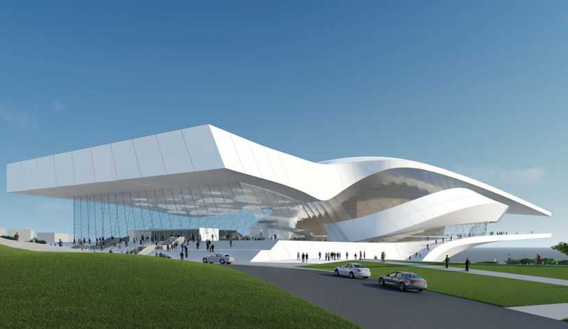Силуэт здания, выполненного из стекла и бетона, напоминает крылья птицы (чайки). В театре будет два зала — на 1100 (большой) и 200 (камерный) мест, репетиционные, технические, административные помещения, сценические карманы, круговая обзорная панорама, комната для VIP-персон, ресторан. Строительство оперного театра планируется завершить в 2024 году.