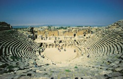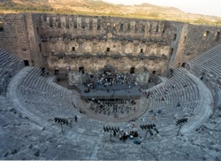 Всего в 45 километрах от Антальи находится подлинная драгоценность этих мест – античный амфитеатр Аспендос, являющийся одним из наиболее хорошо сохранившихся памятников греко-римской цивилизации во всем мире. Он был построен архитектором Зеноном в правление знаменитого римского императора-философа Марка Аврелия (161 – 180 гг. н. э.) и представляет собой ступенчатое полукружье на пять тысяч мест с галереей из 59 арок, обрамляющей театр. Чаша Аспендоса не так велика, как аналогичные строения в других частях Средиземноморья – по масштабам она, конечно, не может конкурировать, например, с величественной веронской Ареной. Но у Аспендоса есть свои преимущества. Во-первых, отличная сохранность, немалую роль в чем, как ни странно, сыграла реставрация, осуществленная еще завоевателями-сельджуками в 13 веке. А во-вторых, это превосходная естественная акустика: голоса здесь звучат ярко и насыщенно, словно поют непосредственно около тебя – нет ощущения размытости, расфокуссировки звука, никакой ветер в Аспендосе пению не помеха. Словом, идеальное место для оперы.