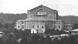 Фестиваль вагнеровской музыки в оперном театре (Festspielhaus) немецкого города Байрёйта (земля Бавария). По традиции проводится в летнее время. Этот театр создан по замыслу Вагнера 1 специально для исполнения его музыкальных драм и открыт в 1876 (13-17 августа) премьерой Кольца нибелунга под управлением Рихтера (первое полное исполнение тетралогии). Эта постановка стала художественным событием большого масштаба. На премьере присутствовали выдающиеся деятели искусств и музыканты, среди них Лист, Чайковский, Н. Рубинштейн, Э. Григ, А. Брукнер, Сен-Санс. Среди гостей фестиваля также были Л. Толстой и Ф. Ницше.