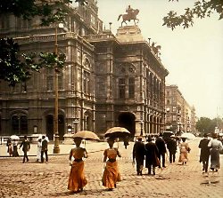 Крупнейший австрийский музыкальный театр. До 1918 носил название – Венская придворная опера. Первые оперные спектакли итальянских оперных трупп при дворе австрийского кайзера состоялись еще в середине 17 в. К концу века стали проводиться регулярные представления австрийской придворной труппы. Для этого было построено несколько театральных залов в Вене и ее предместьях. В 1665 открылся Театр на Кортине (сгорел в 1699), сооруженный Л. О. Бурначини, сыном знаменитого архитектора и художника Дж. Бурначини. С середины 18 в. оперные представления придворной труппы проходили, в основном, в Бургтеатре и Кернтнертортеатре.
