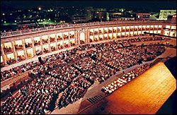 Сначала несколько слов об истории фестиваля, существующего уже десять лет в городе, знаменитом своими мозаиками 5-6 веков. Любой, посещающий Равенну, устремляется в собор Сан-Витале, мавзолей Галлы Плацидии, где выставлены мозаичные панно с изображением Юстиниана, и к гробнице варварского короля Теодориха. Теперь у города есть и своя музыкальная достопримечательность. Фестиваль был основан Риккардо Мути, а возглавляет его супруга маэстро Кристина Мути.