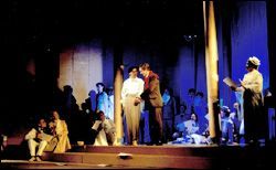 Мы продолжаем знакомить наших читателей с подробностями фестиваля "Золотая маска-2001". Среди оперных спектаклей-номинантов есть уже весьма известные постановки, о которых было много публикаций в прессе. Нет надобности подробно представлять "Золото Рейна" и "Дон Жуан" Мариинского театра, также как и геликоновскую "Леди Макбет Мценского уезда". Расскажем подробнее о менее известных спектаклях. Среди них "Евгений Онегин" Саратовского театра оперы и балета.