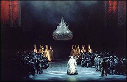 В последние годы в Мариинском театре появился особый тип постановок. Это спектакли-версии (назовем их так). Имеются в виду произведения, к которым театр обращается неоднократно в течение сравнительно небольшого (по оперным масштабам) промежутка времени. К таковым принадлежит, например, «Китеж», поставленный аж трижды за последние годы. Сюда же можно отнести и «Бориса Годунова», также в третий раз (с 1989 года) значащегося на премьерной афише. За констатацией этого, вроде бы банального факта, не упомянутого разве что ленивым, кроется, однако, нечто большее, чем школьная арифметика.