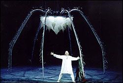 «…Красивая люстра, на вид вполне мирная, в финале неожиданно и страшно трансформируется: в сцене смерти Бориса центральный кронштейн разветвляется и распадается на шесть мохнатых паучьих ног. Паук нависает над Борисом, наползает на него, шатром свесив свои сочленения: жуткая смерть без прощения и сострадания».