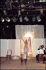 Музыкальная сторона спектакля также (дирижер К.Науменко) не внушала доверия. Нестройное музицирование камерного ансамбля, его ритмическая "распущенность", если так можно выразиться, не добавляли спектаклю привлекательности. В полной мере это касается и вокала. За исключением У.Беляевой и В.Кальбергеновой, остальные артисты выглядели откровенно слабо, особенно исполнители мужских ролей (П.Бадрах, В.Кирюхин, М.Дядиченко и др.).