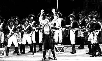 Перед тем, как идти на красноярскую "Дочь полка", привезенную театром на "Золотую маску" весной нынешнего года, я решил освежить память и прослушал знаменитую запись Р. Бонинга (1968 года) с Д. Сазерленд и Л. Паваротти. Чем больше восхищала меня Мария-Сазерленд (тогда еще бывшая в расцвете сил), тем в большее уныние я впадал. Ну что же сможет предложить провинциальный российский театр? Тем паче, что Бог весть сколько лет не звучала эта, популярнейшая в 19 веке, опера на отечественной сцене. Однако, не тут-то было. И сама постановка, сделанная с юмором, драматически выстроенная, и, главное, Мария!.. - такого неподдельного удовольствия я не получал давно. Ровность регистров, крепкие верха, идущие не из утробы и без надрыва, хорошая игра, а уж о внешности я и не говорю. Кто же это такая, Светлана Кольянова, с таким милым "о" в фамилии вместо стандартного "а"?