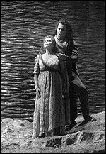 "Дева озера" в здании Палафестиваль - подлинное наслаждение для глаза и триумф художницы Маргериты Палли (автора многих незабываемых спектаклей, в том числе и на фестивале в Пезаро). Ее воображаемая Шотландия - романтические скалы, покрытые вечнозеленым мхом, и искрящееся бирюзой озеро. Это озеро - чудо фантазии и сценической техники. "Раскрываясь" посередине волнистой линией, оно служит занавесом, за которым расстилаются мягкие холмы. Не столь удачны костюмы Карло Дьяппи, который представляет шотландских воителей с открытой грудью и ногами (эти детали сделаны из резины), что делает их неизящными и даже устрашающими. Режиссер Лука Ронкони в случае с "Девой озера" остается в тени: все внимание сосредоточено на певцах-актерах, а хор располагается живописными группами.