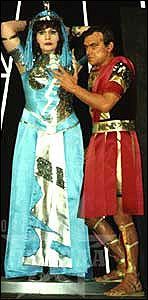 Заметно, что Платонов серьезно поработал и с хором, и с исполнителями главных партий. Александра Агапова, который пел Марка-Антония все премьерные спектакли, так просто не узнать: подача голоса стала увереннее, исчезла жесткая атака, появился сильный бархатистый оттенок и сочность. Татьяна Полуэктова спела Клеопатру: по сравнению с тем, как она пела на открытии сезона, можно даже сказать - замечательно. Нет серьезных претензий в пении и ко второй Клеопатре - Светлане Боровиковой. Да вот "беда" - обе Шармиан (в первом составе наперстницу поет Татьяна Каминская, во втором - Надежда Бабинцева) выглядят в своем исполнении гораздо выразительнее, чем царица Египта. Каминская так просто приобретение для театра, но это приобретение отчего-то нам предъявляют весьма нечасто. Хороша и Бабинцева, которая, едва придя в труппу, заявила о себе в "Свадьбе Фигаро" и подтвердила в этом спектакле.