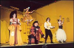 Режиссер-постановщик спектакля Михаил Кисляров уловил все эти литературно-музыкальные прелести партитуры. Его блестящая фантазия, балансирующая на грани элегантного чудачества, фонтанирует. В "гэгах" недостатка не ощущается. Нет смысла пересказывать их, подчас, сюрреалистическую сущность. Многочисленные детали сценографии (С.Бархин), от рукомойника, до подвисающих" стульев играют в нужное время и в нужном месте. Если "вынести за скобки" волнение и типичную для премьеры сыроватость артистической работы, то у спектакля хорошее будущее!