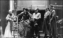 И не только потому, что не удалось осуществить ее постановку в 1916 году в Мариинском театре (причина этого кроется, кстати, не столько в наступивших "революционных буднях", что является расхожим мнением, даже проникшем в буклет, сколько в неготовности тогдашних исполнителей к такой музыке, их нежелании "путаться в дебрях Игрока") и вновь забрезжила надежда в 1927. Отчасти ключом к пониманию этого шага автора, возможно, являются его собственные слова: "Десять лет, отделявших от сочинения его ("Игрока" - прим. ред.), дали возможность ясно увидеть, что было музыкой, а что рамплиссажем*, прикрывавшимся страшными аккордами. Эти места я выкидывал и замещал новыми, построенными главным образом на том материале "Игрока", который я оценивал как удавшийся. Еще я обратил внимание на то, чтобы упорядочить вокальные партии и облегчить инструментовку". Предельно ясно? Пожалуй. Так зачем же, все-таки, театр взялся за материал, раскритикованный самим автором? Ответ должен был последовать со сцены. Хотя его очевидность не была так уж ожидаема. Ибо разобраться в нюансах различий обеих редакций даже и музыканту (если только он не специалист по оперному творчеству Прокофьева) не просто, учитывая, что заметных драматургических расхождений в них нет. Все изменения касаются, в основном, стилистики вокального языка сочинения и инструментовки и растворены в его музыкальной ткани (впрочем, как показал просмотр, все же можно было кое-что увидеть и с первого взгляда). Если добавить к этому, что никаких традиций в исполнении этой версии не было и быть не могло, то полагаться пришлось только на непосредственное впечатление, эстетический и музыкальный опыт, знание других прокофьевских опусов. В этой "трудной" ситуации были и свои плюсы. Не надо копаться в сравнениях: кто и как трактовал ту или иную сцену, взял ту или иную ноту. Надо просто погрузиться в эту музыку, слушать и смотреть. Вот с таким настроем и подойдем к описанию услышанного и увиденного.